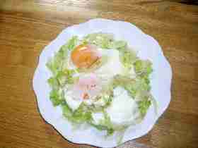 ただ、今回はちょっと次元が違う(というのは大げさだが)。 それまでの部署では固定電話だったのだが、今いる事業所では全員がPHSを使っている。会議などで離席する場合も、当事業所内の範囲では、PHSを持ち歩く規則だ。その規則はいいことだが、問題はPHSの音質。 同じ事業所内からかかってくる内線の場合にはさほど問題ないレベルなのだが、社内でも他事業部からのものや、外線の場合には、聞き取りにくいこと甚だしい。受話音量の設定を変更してもあまり効果ない。妻からかかってきた電話に何度「えっ?」と聞き返したことか。 時々、押し売り業者なのか不明だが外線から「○○さんはいらっしゃいますか?」という電話がかかってくる。この「○○さん」はいつも同じ苗字だ。社内の電話番号を検索すると、紛らわしいのが2件出てきた。 1件は、私が使っている外線番号を以前使っていたらしい人で苗字は「○○」で下の名前は「ヒトシ」。もう1件は、私の外線番号とよく似ているが1箇所数字の2桁が入れ替わったものを今も使っている人で、苗字は同じ「○○」で下の名前が「ヒロシ」。 ここで聞き取りにくい電話で困るのだ。相手に、呼び出したい人の下の名前を言わせても、「ヒトシ」なのか「ヒロシ」なのか判別不能だから。 押し売り業者だと断定できれば、「その人は退職しました」などとごまかすこともできようが、「○○さん」の業務にかかわる話だとマズイ。 この電話にも私の耳が早く慣れてくれるように祈るしかないですかね。 妻に好評だったので、昨日に続いて今朝も「巣篭もり卵」を作った。 2人前の材料は、以下のとおり。 卵 2個 キャベツ 約60g 玉ねぎ 約60g 塩コショウ 少々 オリーブオイル 大匙1 ウスターソース お好み(しょうゆでも可)。 作り方は簡単。 キャベツは1cm幅に切り、玉ねぎも細切りにして、オリーブオイル入れたフライパンで少し炒める(キャベツがしんなりする程度)。 塩コショウで味付けして混ぜてから、卵を乗せるように入れて、ふたをして弱火で2,3分暖める。 時々ふたを開けてみて、卵が好みの硬さになったら、お皿に盛って、ウスターソースを垂らす(フランス料理のソースのように(笑))。 卵が野菜の上に乗っているので、火加減は多少アバウトでも失敗しにくいです。 卵の仕上がりは半熟でも、硬めでもイケます。ただ、硬めの方が、野菜ごと卵を皿に移すときに崩れにくいので楽です。 また、コーンビーフを入れる人もいるようですが、朝はあっさりめが好きなので、私は入れません。その代わりにウスターソースがアクセントになります。 お試しあれ。